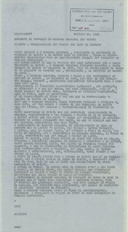 Notícia referente à regularização do preço dos bens de consumo, por parte do Governo Regional, nomeadamente em relação à batata, devido à escassez da mesma durante o referido ano. Refere, também as intervenções do Governo noutros bens de consumo, como a cebola, referindo que a intervenção do Governo no circuito de venda de bens de consumo serve apenas para regular os preços de mercado respeitando consumidores e produtores.
