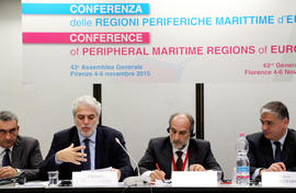 Registo fotográfico do Presidente do Governo, Vasco Cordeiro, a presidir à 43.ª Assembleia-Geral da Conferência das Regiões Periféricas e Marítimas da Europa – CRPM, que decorreu no Firenze Fiera - Congress and Exhibition Centre, praça Adua, em Florença, Itália.