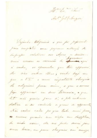 Informa António Gil que pretende completar a coleção de impressos relativos aos Açores e que não há muitas ocasiões de encontrar os opúsculos que vão surgindo em outras ilhas. Neste sentido solicita que adquira para Ernesto do Canto o que surgir na sua livraria. Indica os títulos do que pretende adquirir. Aparenta ser um rascunho.
