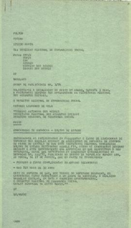 Aviso para publicação nos órgãos de comunicação social, para pessoas interessadas em frequentar o curso de educadoras de infância, nas Escolas Normais de Infância de Coimbra e Viana do Castelo que a Secretaria Regional dos Assuntos Sociais concederá bolsas de estudo para esse fim.