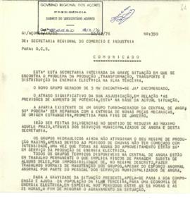Este processo contém comunicados, notas oficiosas, avisos e informações da Secretaria Regional do Comércio e Indústria, para serem emitidos pelos Órgãos de Comunicação Social (OCS).