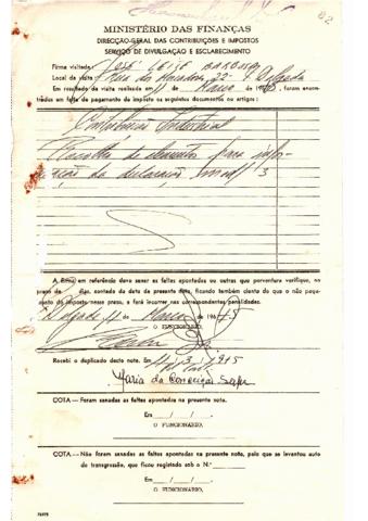Formulário do Serviços de Divulgação e Esclarecimento da Direção Geral das Contribuições e Impostos [Ministério das Finanças] preenchido aquando da visita feita por aqueles serviços para recolha de informação no âmbito da Contribuição Industrial.