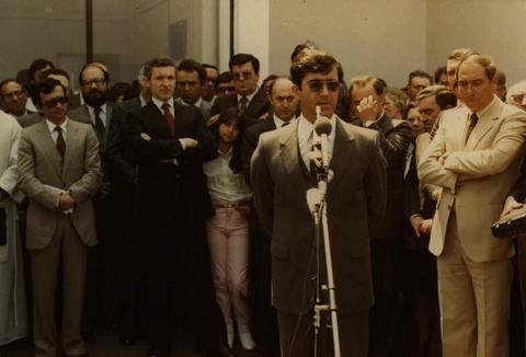 Imagem captada aquando do discurso proferido pelo General Tomás George Conceição e Silva na inauguração do aeroporto da Ilha do Pico. Na imagem, também, é possível visualizar o Sr. Presidente do Governo Regional dos Açores , João Bosco de Mota Amaral, o Secretário Regional do Equipamento Social, João Bernardo Rodrigues, o Secretário Regional dos Transportes e Turismo, Alberto Romão Madruga da Costa, José Pacheco de Almeida e Germano da Silva Domingos.