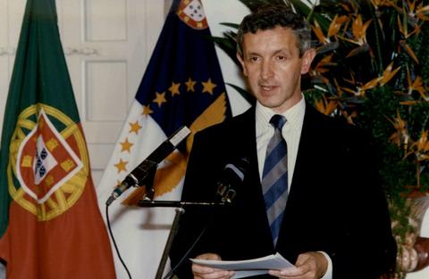 Fotografia que capta o momento em que João Bosco Mota Amaral está proferir o discursos de tomada de posse do IV Governo Regional.