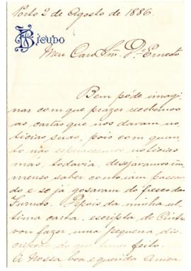 Expressa a Ernesto do Canto a vontade de casar com a filha Ana. Documento original manuscrito em português. Título atribuído.