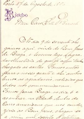 Correspondência recebida do genro Filomeno Bicudo (1862/1910) , casado com a filha mais velha Ana do Canto Bicudo (1863/1913).