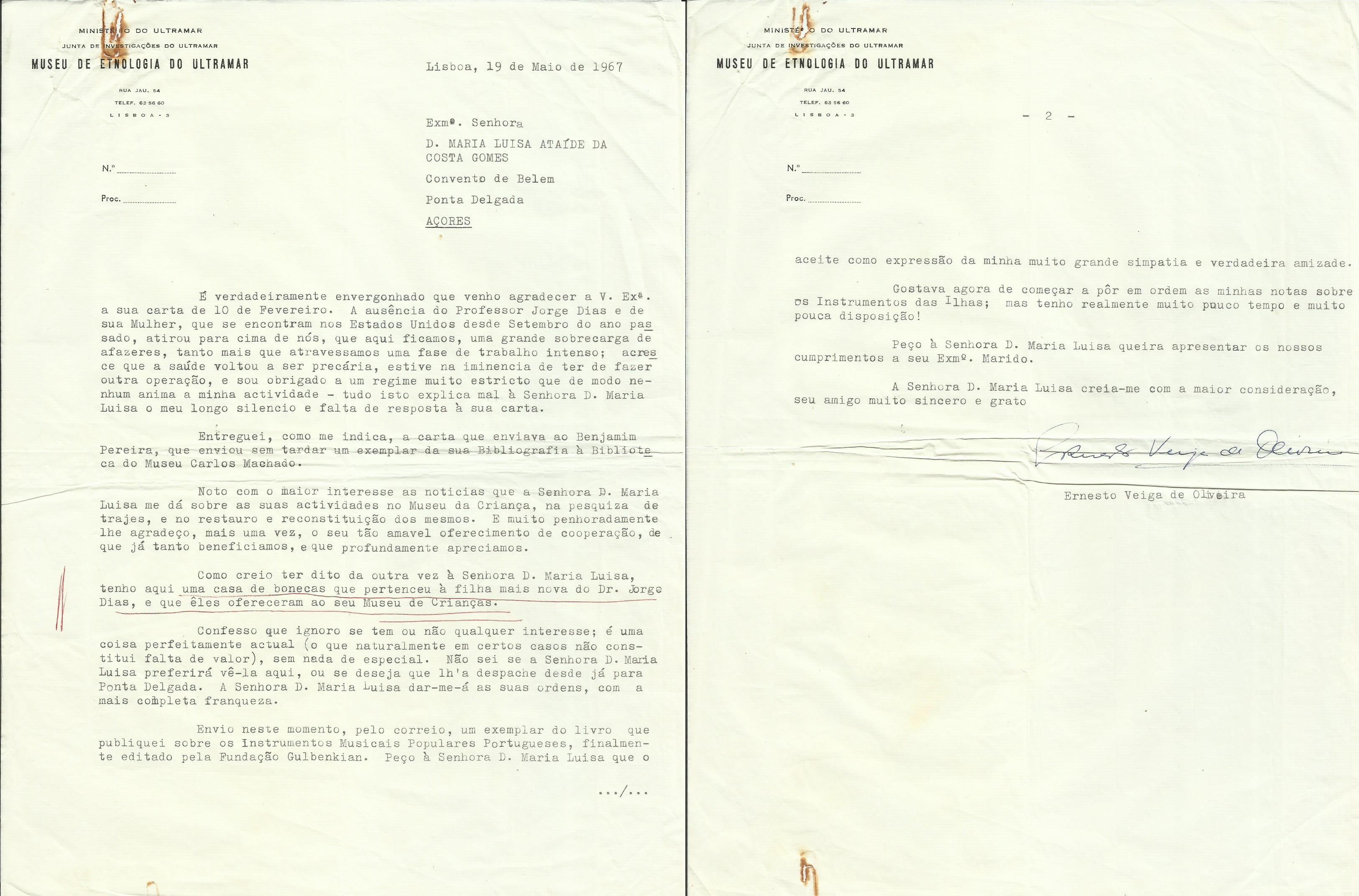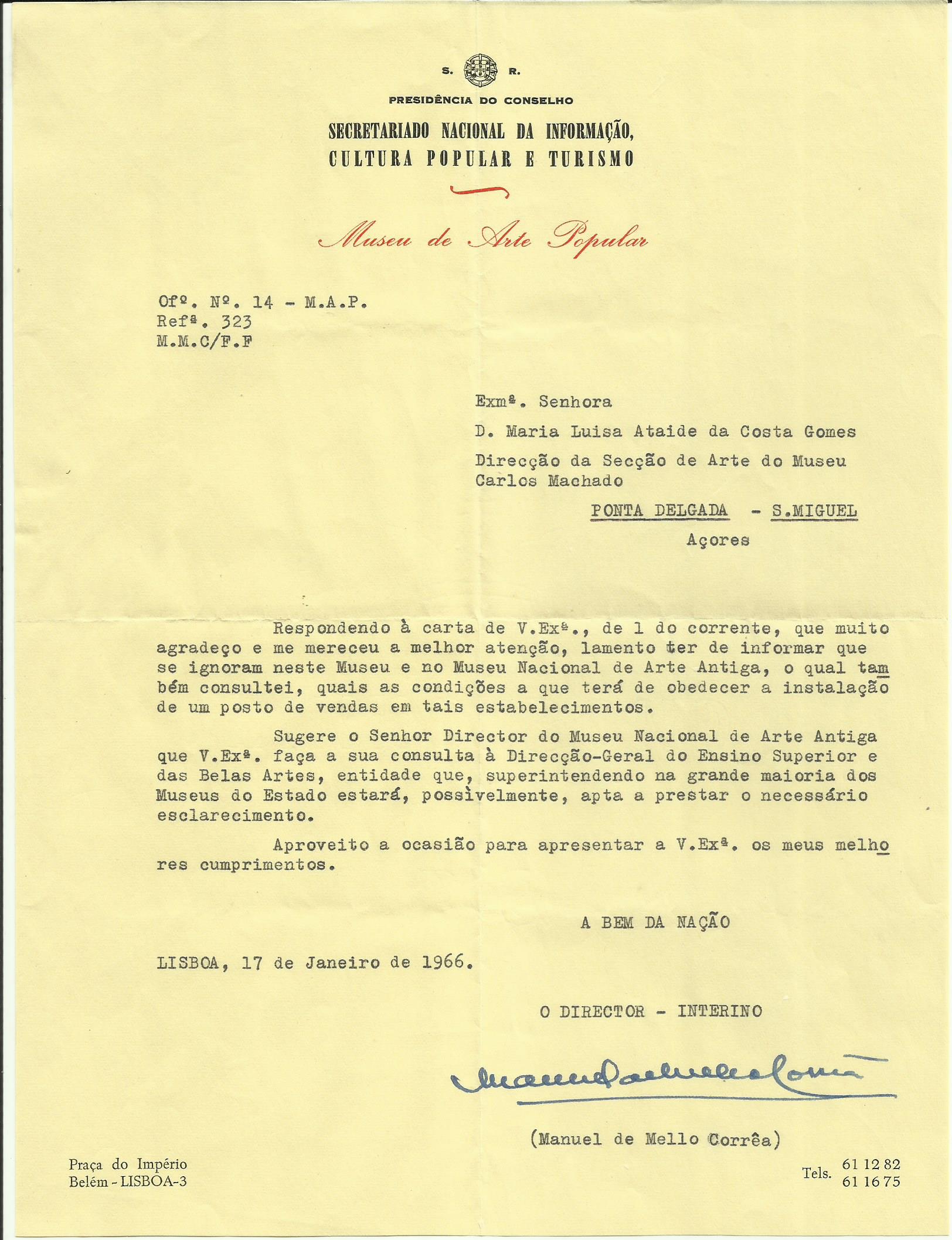 Carta sobre a Sala de Etnografia