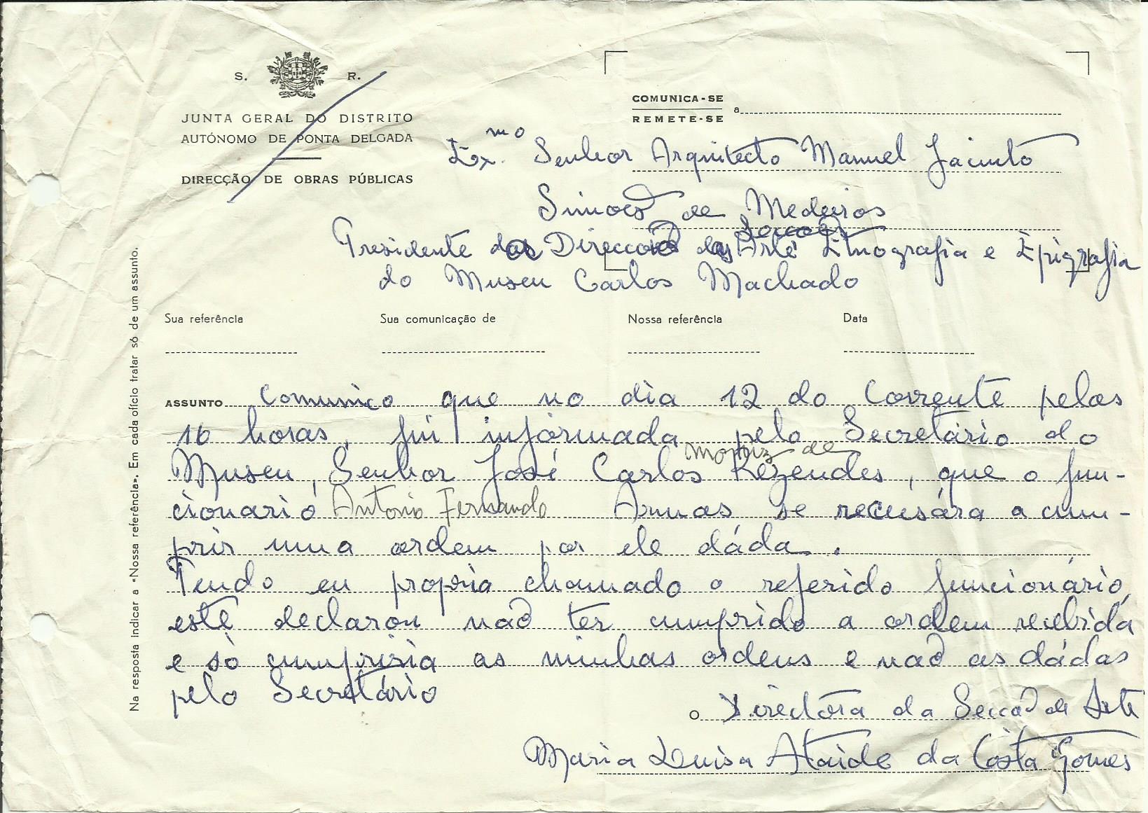 Carta do Círculo de Amigos da Ribeira Grande