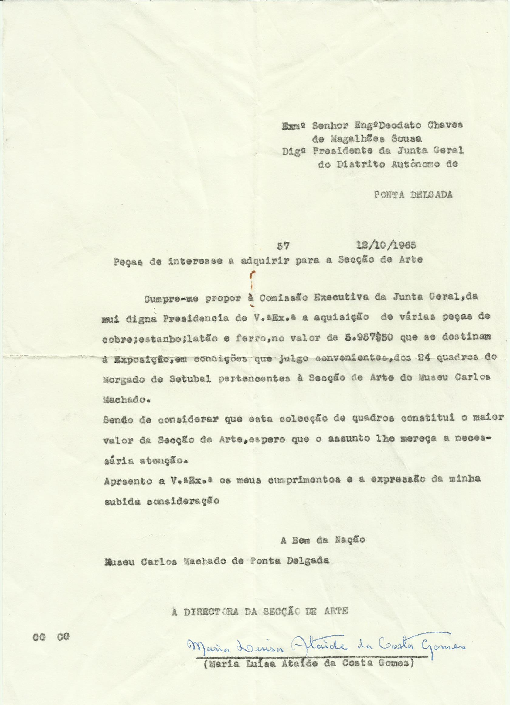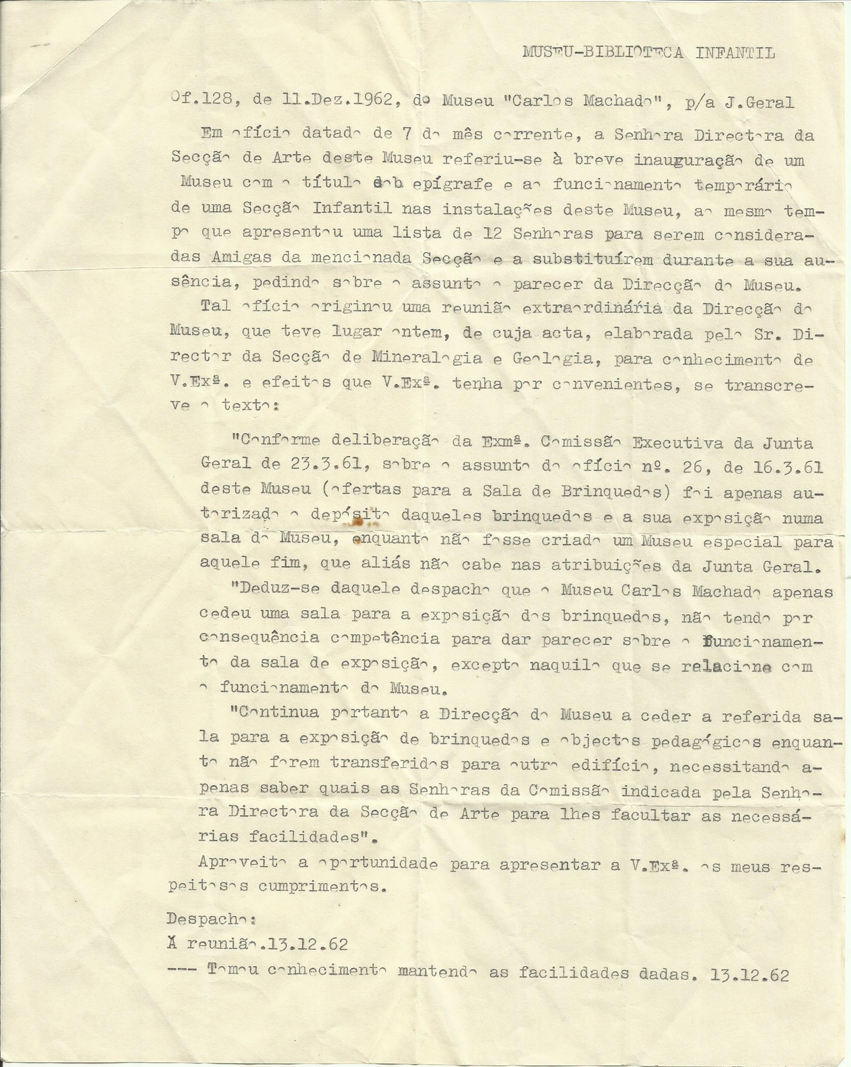 Cópia de carta sobre a Sala de Etnografia