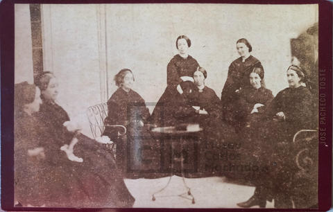 Retrato de grupo, no interior da casa dos Prestes com Margarida leite do Canto (1842/1915) acompanhada com algumas das irmãs Canto. Nem todas as pessoas presentes foi possível identificar.