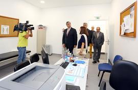 Registo fotográfico do Presidente do Governo Regional, Vasco Cordeiro, visitando as instalações e os gabinetes para atendimento aos utentes da Unidade de Saúde de Água de Pau, Concelho da Lagoa. O novo espaço, está situado no piso superior do Plano Centenário e é composto por um hall de distribuição, interligado com uma secretária e uma sala de espera para os utentes, dez consultórios em que um é destinado a tratamentos, sala de preparação do material, arrumos variados, copa, instalações sanitárias para os utentes e zona de vestiários para os funcionários. Acompanhar o Presidente do Governo Regional, esteve presente o Secretário Regional da Saúde, Luís Mendes Cabral e a Presidente da Câmara da Lagoa, Cristina de Fátima Silva Calisto.