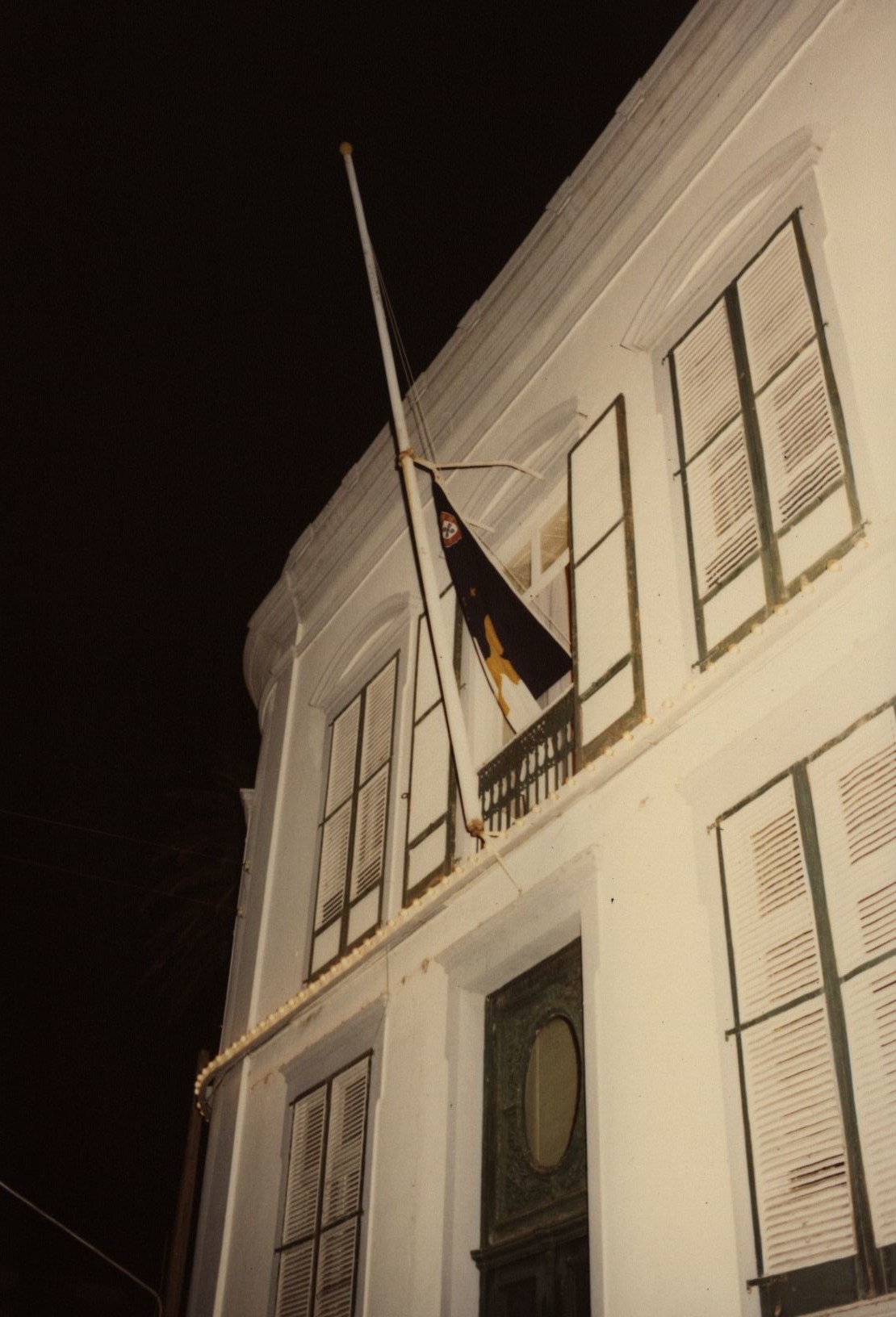 Imagem capturada no momento em que foi hasteada pela primeira vez a bandeira dos Açores no Palácio da Conceição em Ponta Delgada.