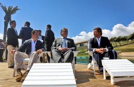 Registo fotográfico do descerramento da placa da inauguração da nova Central Geotérmica do Pico Vermelho, pelo presidente do Governo Regional dos Açores, Carlos César, do presidente da EDA, Roberto de Sousa Rocha Amaral e na presença de alguns membros do governo.