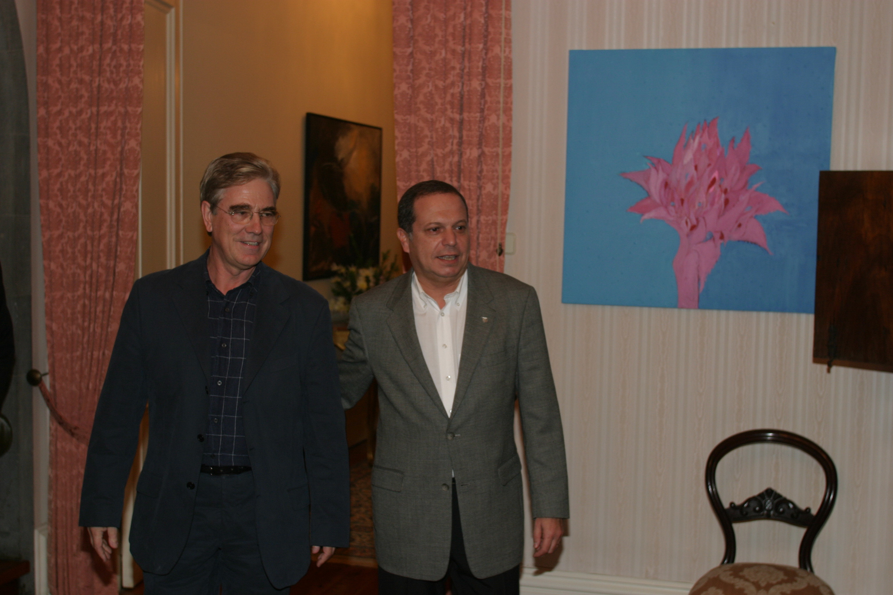 Registo fotográfico do presidente do Governo Regional dos Açores, Carlos César recebendo o comandante cessante da Zona Militar dos Açores, Major-General, Adelino de Matos Coelho, no Palácio da Conceição, em Ponta Delgada.