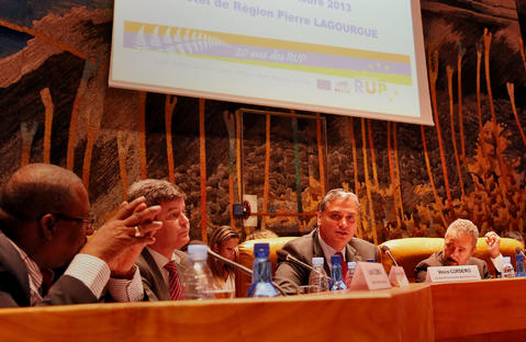 Registo fotográfico do discurso do Presidente do Governo Regional, em Saint-Denis, na Ilha da Reunião, na cerimónia evocativa do 20.º aniversário da Declaração de Saint Malo.