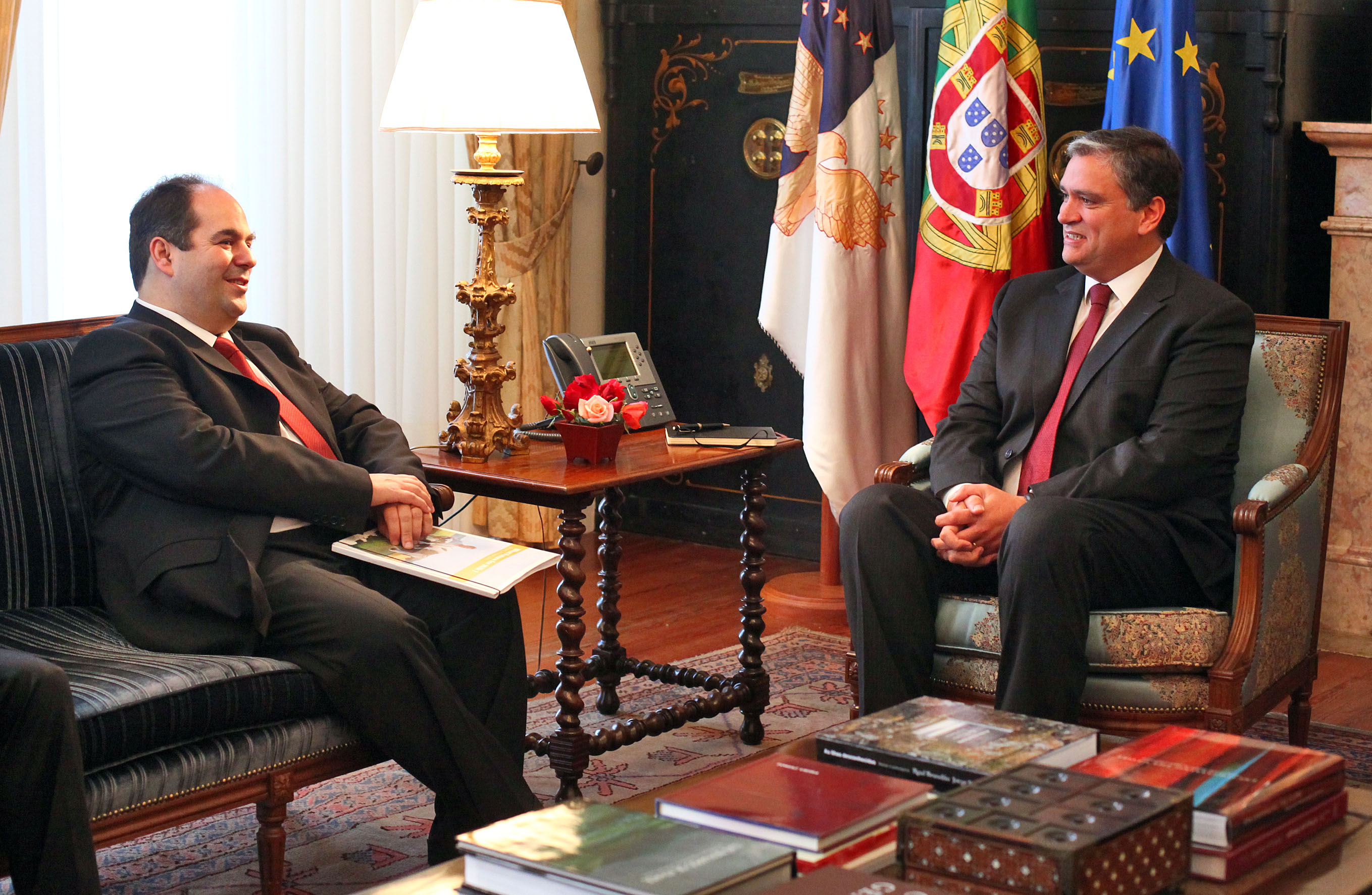 Registo fotográfico da audiência que o Presidente do Governo Regional, Vasco Cordeiro, concedeu ao Diretor-Geral da Associação Nacional de Industriais de Laticínios, Pedro Pimentel, no Palácio de Santana, em Ponta Delgada.