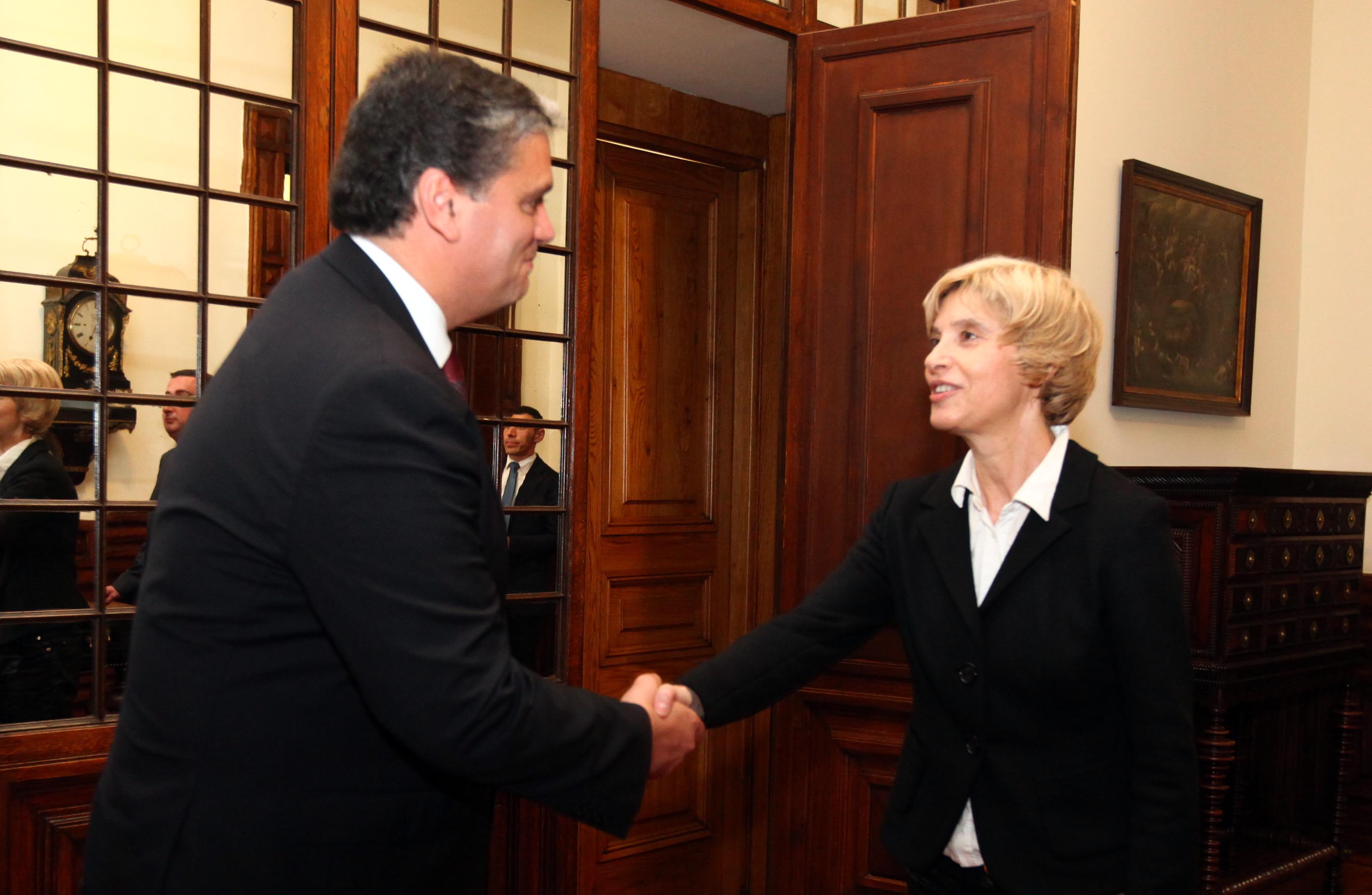 Registo fotográfico da chegada do presidente do Governo Regional, Vasco Cordeiro, ao Palácio de São Bento recebido, pela Assunção Esteves, presidente da Assembleia da República, em Lisboa.