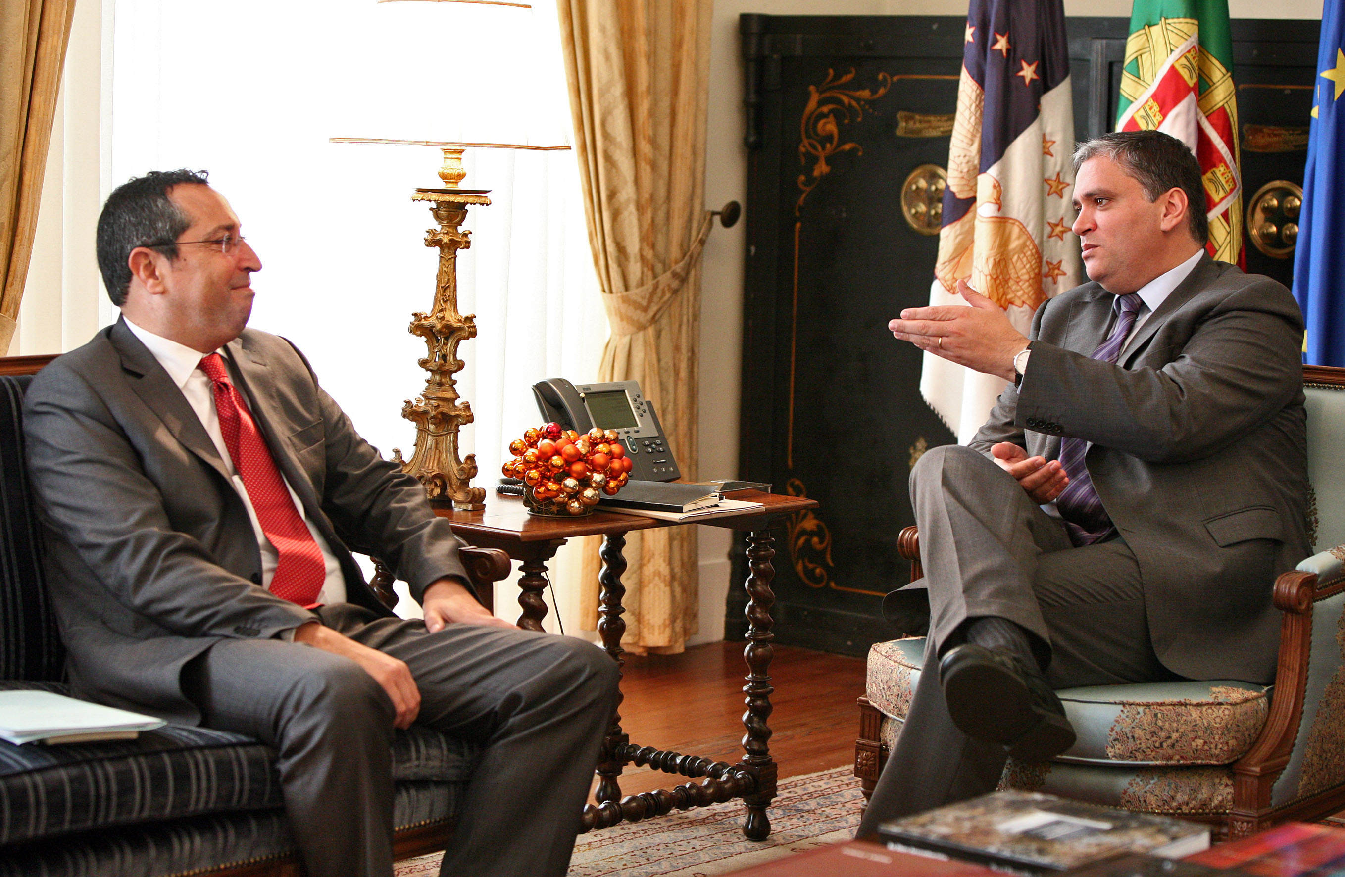 Registo fotográfico do Presidente da Câmara Municipal de Lagoa, João Ponte, em audiência com o Presidente do Governo Regional, Vasco Cordeiro, no Palácio de Santana, em Ponta Delgada.