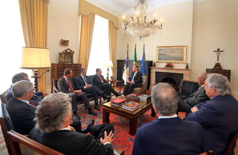 Registo fotográfico da Direção da Associação Nacional de Municípios Portugueses (ANMP), em audiência, com o presidente do Governo Regional, Vasco Cordeiro, no Palácio de Sant`Ana, em Ponta Delgada.