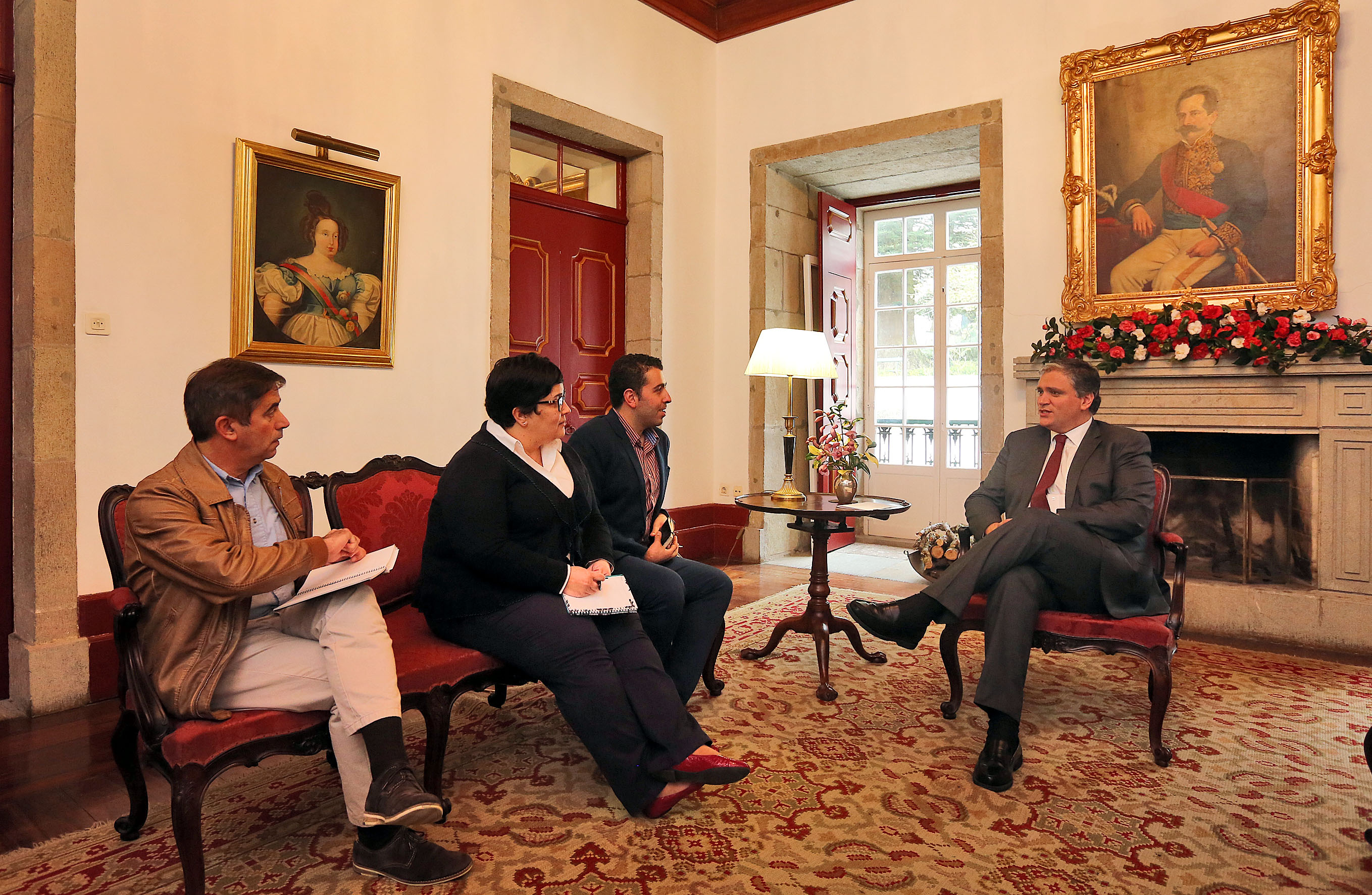 Registo fotográfico da Comissão Representativa dos Trabalhadores Portugueses na Base das Lajes, em audiência, com o presidente do Governo Regional, Vasco Cordeiro, no Palácio dos Capitães-Generais, em Angra do Heroísmo.