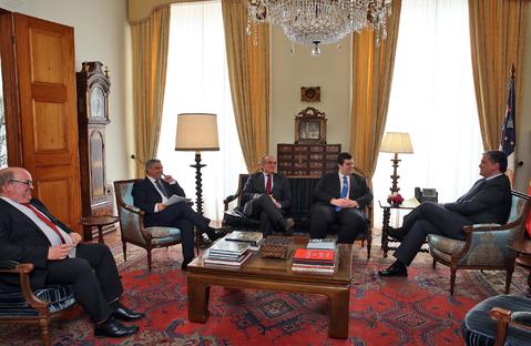 Registo fotográfico da Associação Nacional de Freguesias (ANAFRE), em audiência, com o presidente do Governo Regional, Vasco Cordeiro, no Palácio de Sant`Ana, em Ponta Delgada.
