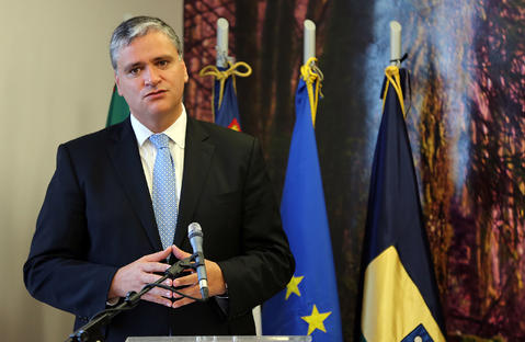 Registo fotográfico do Presidente do Governo Regional, Vasco Cordeiro, discursando na cerimónia de inauguração da obra de remodelação do Lar D. Pedro V, na Praia da Vitória.