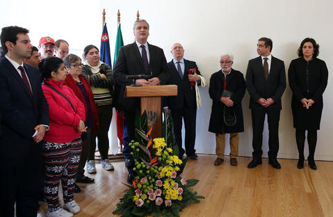 Registo fotográfico do discurso do Presidente do Governo Regional, Vasco Cordeiro, na cerimónia de inauguração do Lar Residencial da Seara do Trigo. Na cerimónia de inauguração, estiveram presentes, a Secretária Regional da Solidariedade Social, Andreia Martins Cardoso da Costa, o Diretor Regional da Solidariedade Social, Frederico Furtado Sousa, o Presidente da Câmara Municipal de Ponta Delgada, José Manuel Bolieiro, Pais e utentes da instituição.
