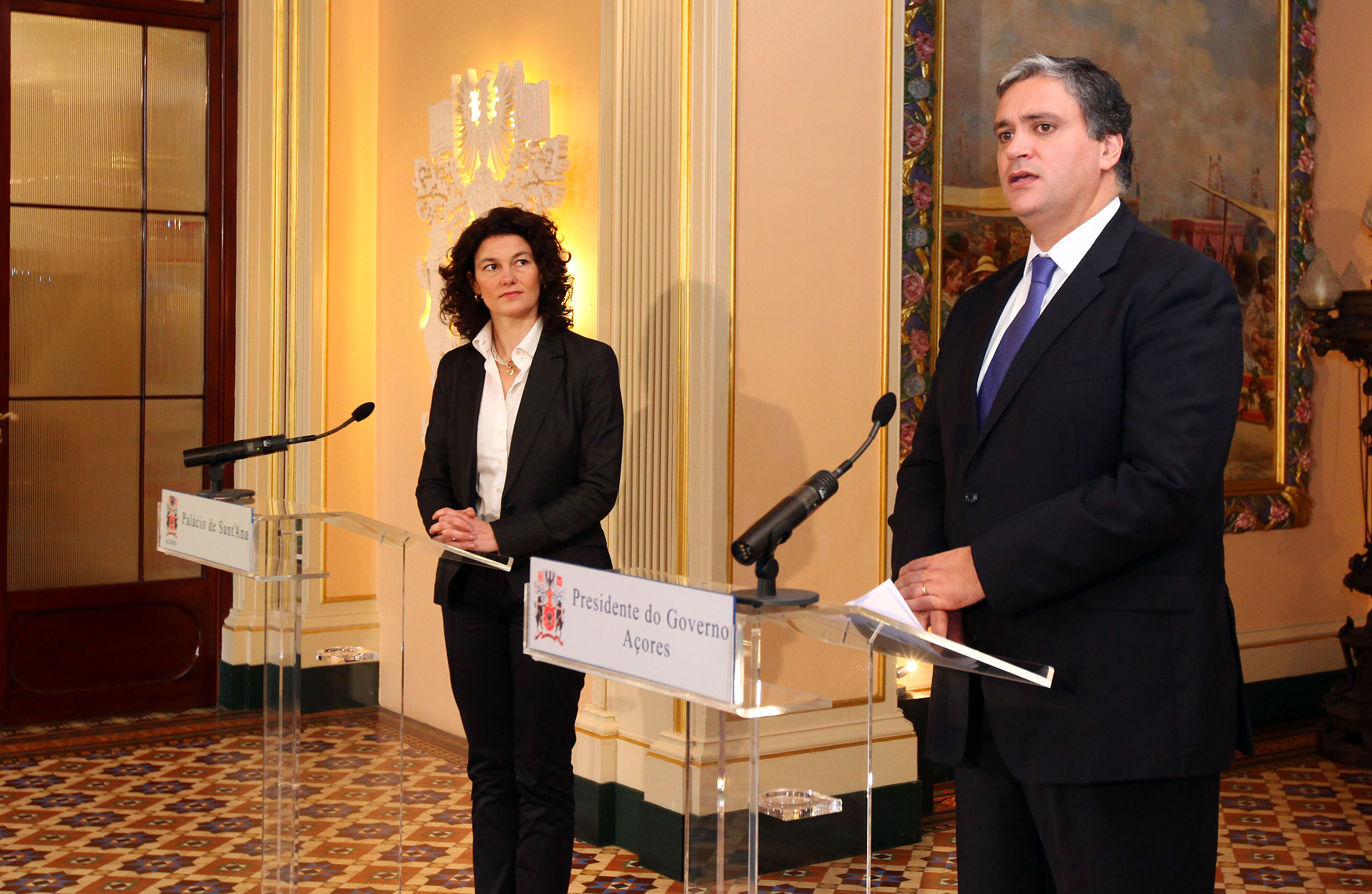 O presidente do Governo Regional e a presidente da Câmara Municipal de Angra do Heroísmo, em declarações aos órgãos de comunicação social