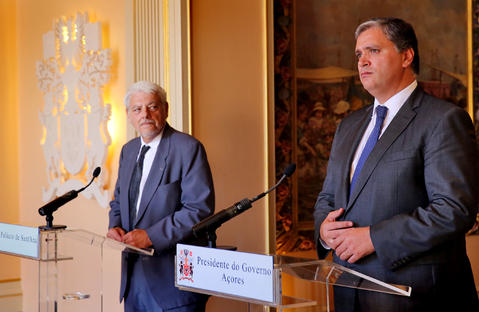 O presidente do Governo Regional, Vasco Cordeiro e o Cônsul dos EUA nos Açores, Daniel Bazan, em declarações aos órgãos de comunicação social