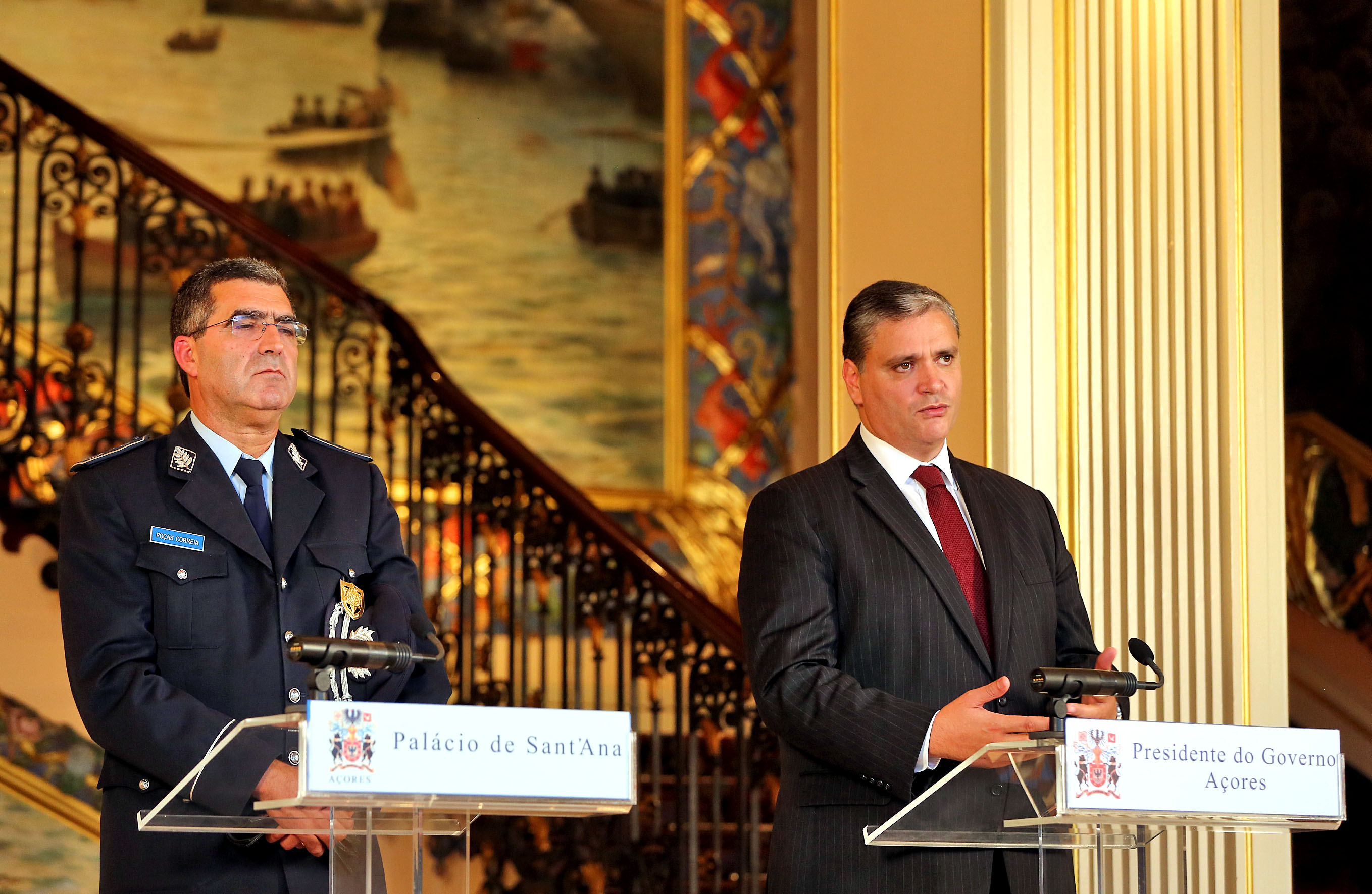 O presidente do Governo Regional e o Comandante Regional da PSP dos Açores, em declarações aos órgãos de comunicação social