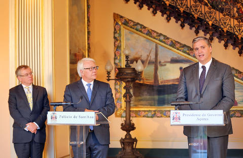 O presidente do Governo Regional e o Presidente da Fundação Luso-Americana para o Desenvolvimento em declarações aos órgãos de comunicação social