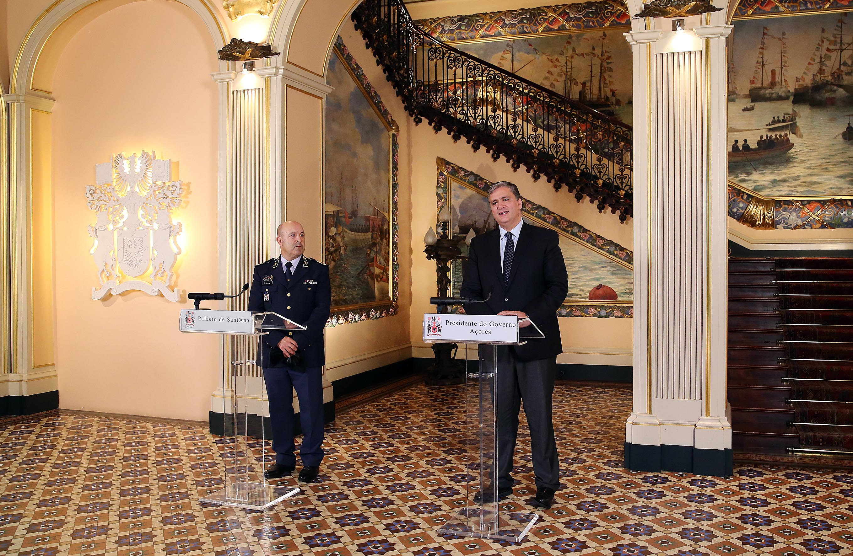 O presidente do Governo Regional e o Comandante da GNR nos Açores, em declarações aos órgãos de comunicação social