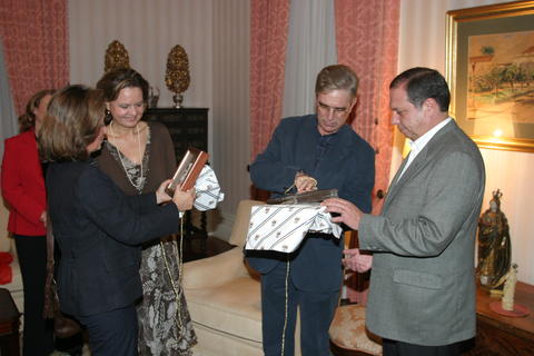 Registo fotográfico do presidente do Governo Regional, Carlos César, e da sua esposa, Luísa César, oferecendo prenda ao comandante cessante da Zona Militar dos Açores, Major-General, Adelino de Matos Coelho, no Palácio da Conceição, em Ponta Delgada.