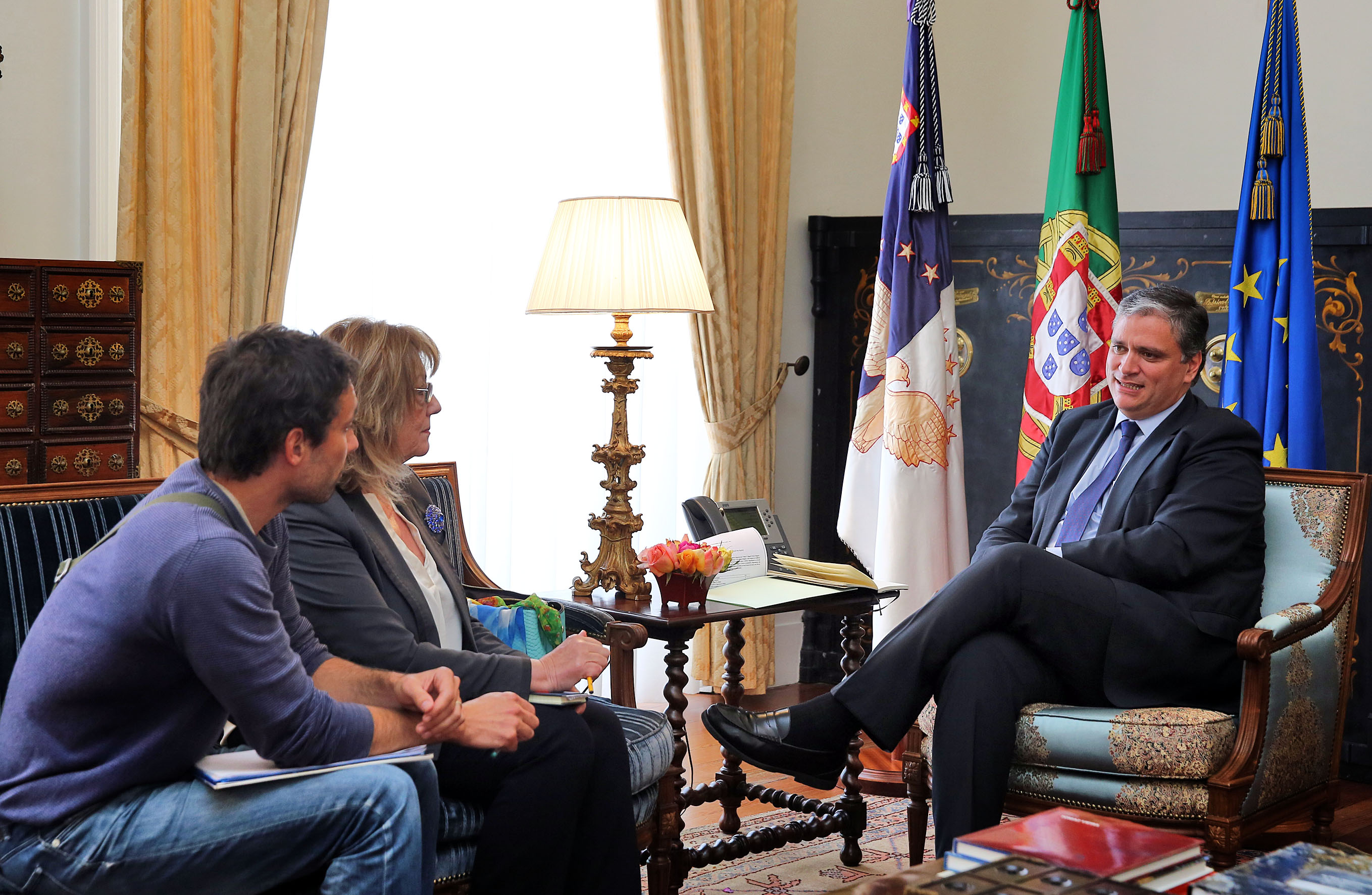 Registo fotográfico da Subcomissão de Trabalhadores do Centro Regional de Rádio e Televisão dos Açores em audiência, com o presidente do Governo Regional, Vasco Cordeiro, no Palácio de Santana, em Ponta Delgada.