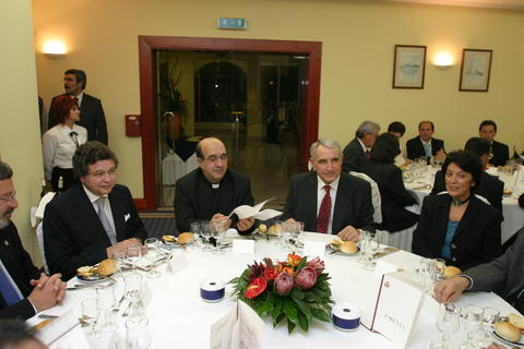 Registo fotográfico do Bispo de Angra D. António de Sousa Braga, o Fernando Menezes, presidente da Assembleia Legislativa Regional entre outros membros do Governo, no jantar da Tomada de Posse do IX Governo, no Fayal Hotel Resort, na cidade da Horta.