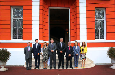 Registo fotográfico do Presidente do Governo, Vasco Cordeiro, com os representantes da Conferência das Regiões Periféricas e Marítimas da Europa (CRPM) e com o Comissário Europeu para o Ambiente, Assuntos Marítimos e Pescas, Karmenu Vella, no Palácio de Santana, em Ponta Delgada.