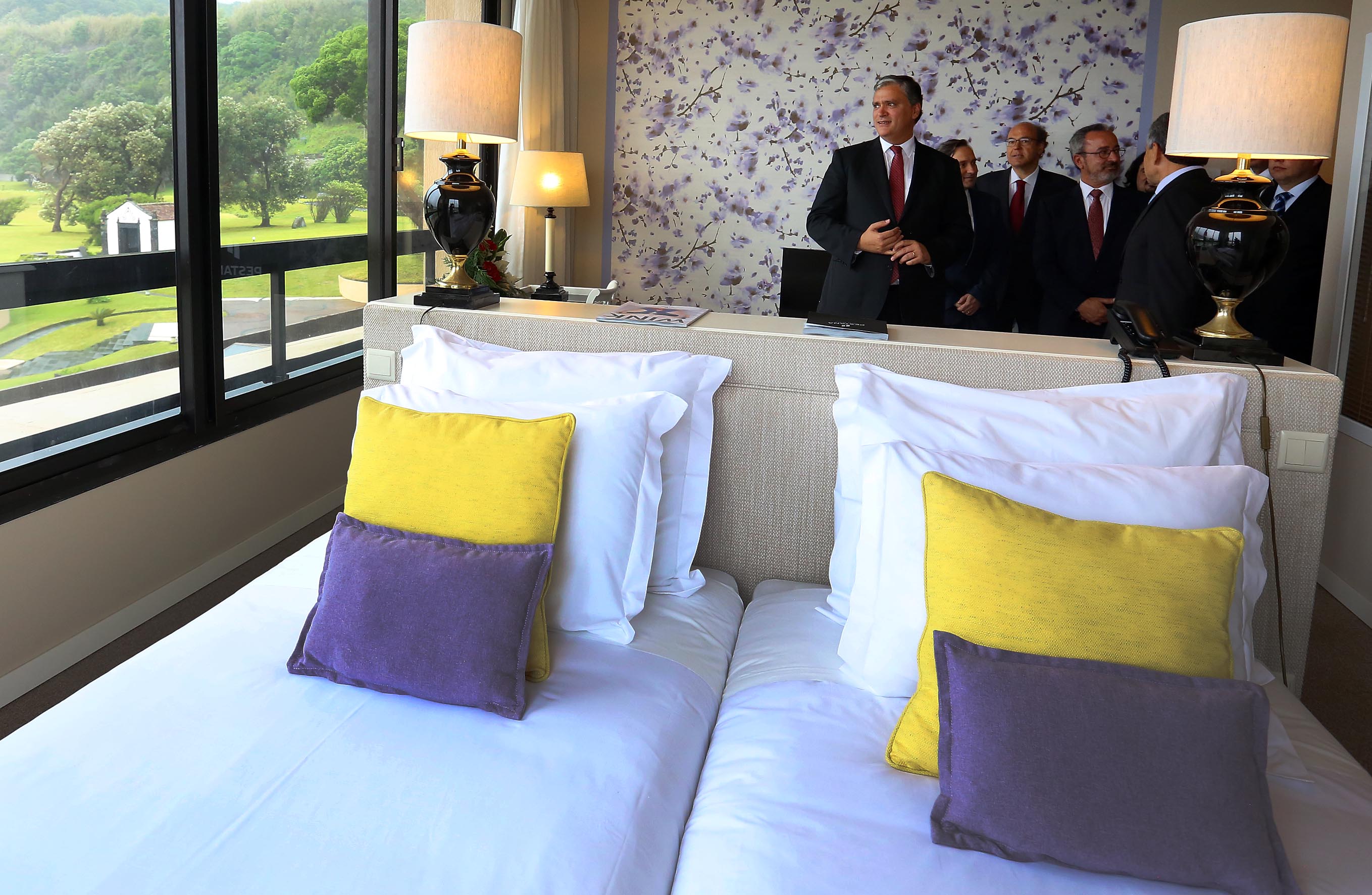 Registo fotográfico do Presidente do Governo Regional, Vasco Cordeiro, na visita aos quartos do Hotel o Pestana Bahia Praia – Nature and Beach Resort, Praia de Água d’Alto, Concelho de Vila Franca do Campo, aquando da sua inauguração.