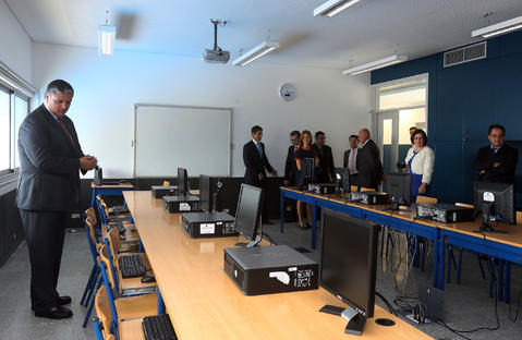 O Presidente do Governo Regional, visita a sala das tecnologias de informação, da Escola Básica António José d'Ávila