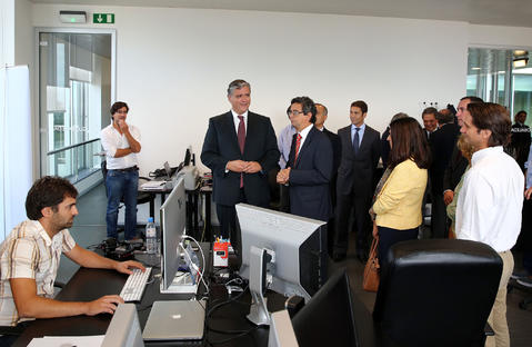 Registo fotográfico do Presidente do Governo Regional, Vasco Cordeiro, aquando da inauguração do NONAGON - Parque de Ciência e Tecnologia de São Miguel, visitou as áreas de trabalho, ao nível tecnológica e na formação de capital humano qualificado no domínio dos sistemas de informação e das comunicações.