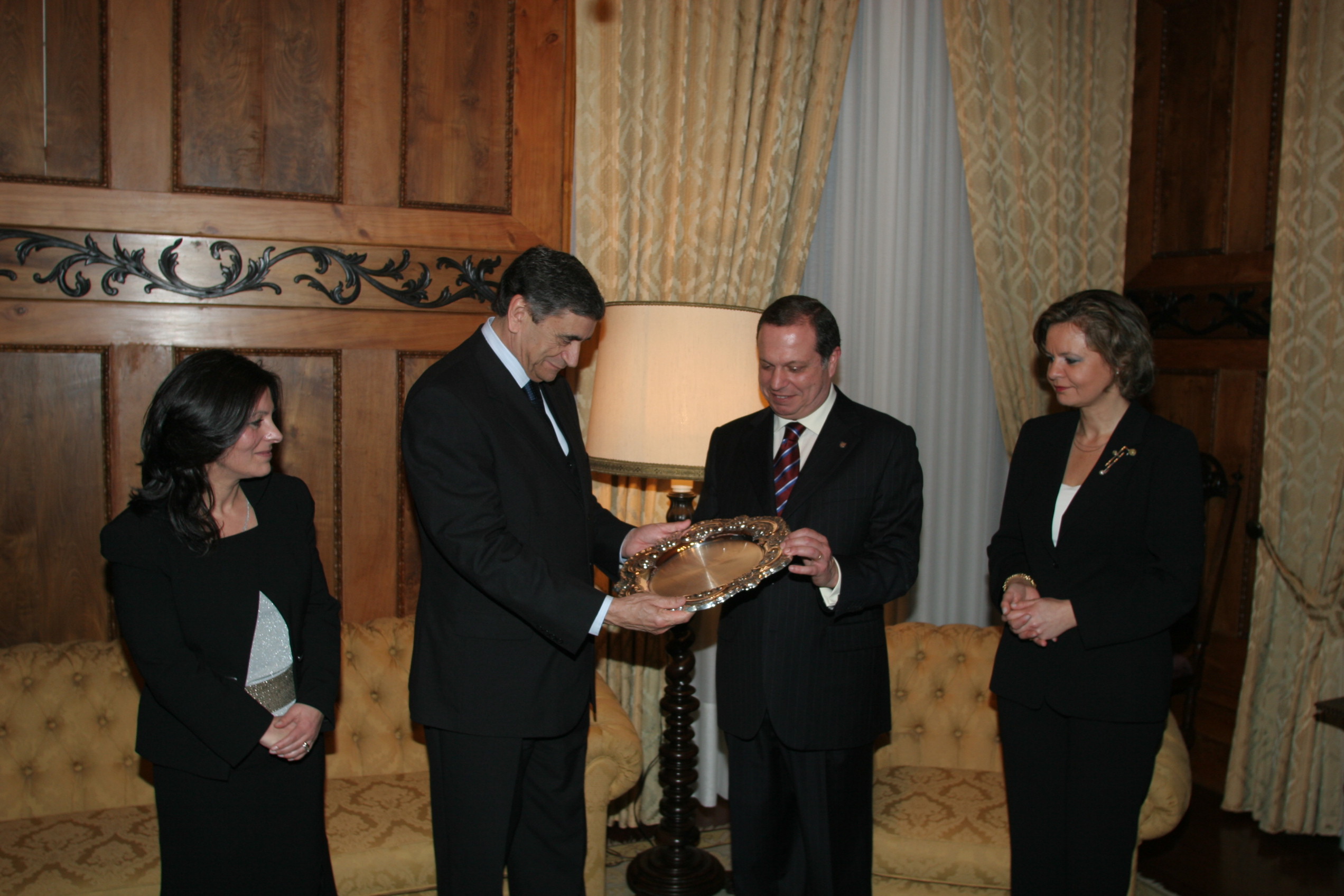 Registo fotográfico do presidente do Governo Regional, Carlos césar, oferecendo uma salva de prata ao Ministro da República para os Açores, Juiz Conselheiro Álvaro Laborinho Lúcio, no Palácio de Sant’Ana, em Ponta Delgada.