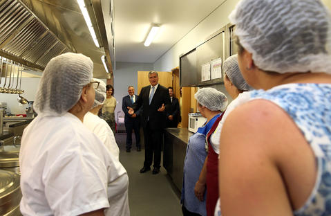 Registo fotográfico do Presidente do Governo Regional, Vasco Cordeiro, acompanha o Presidente da Direção do Lar D. Pedro V, o Cónego Manuel de Azevedo Tinoco, na visita às áreas de serviços do Lar D. Pedro V, aquando da sua inauguração.