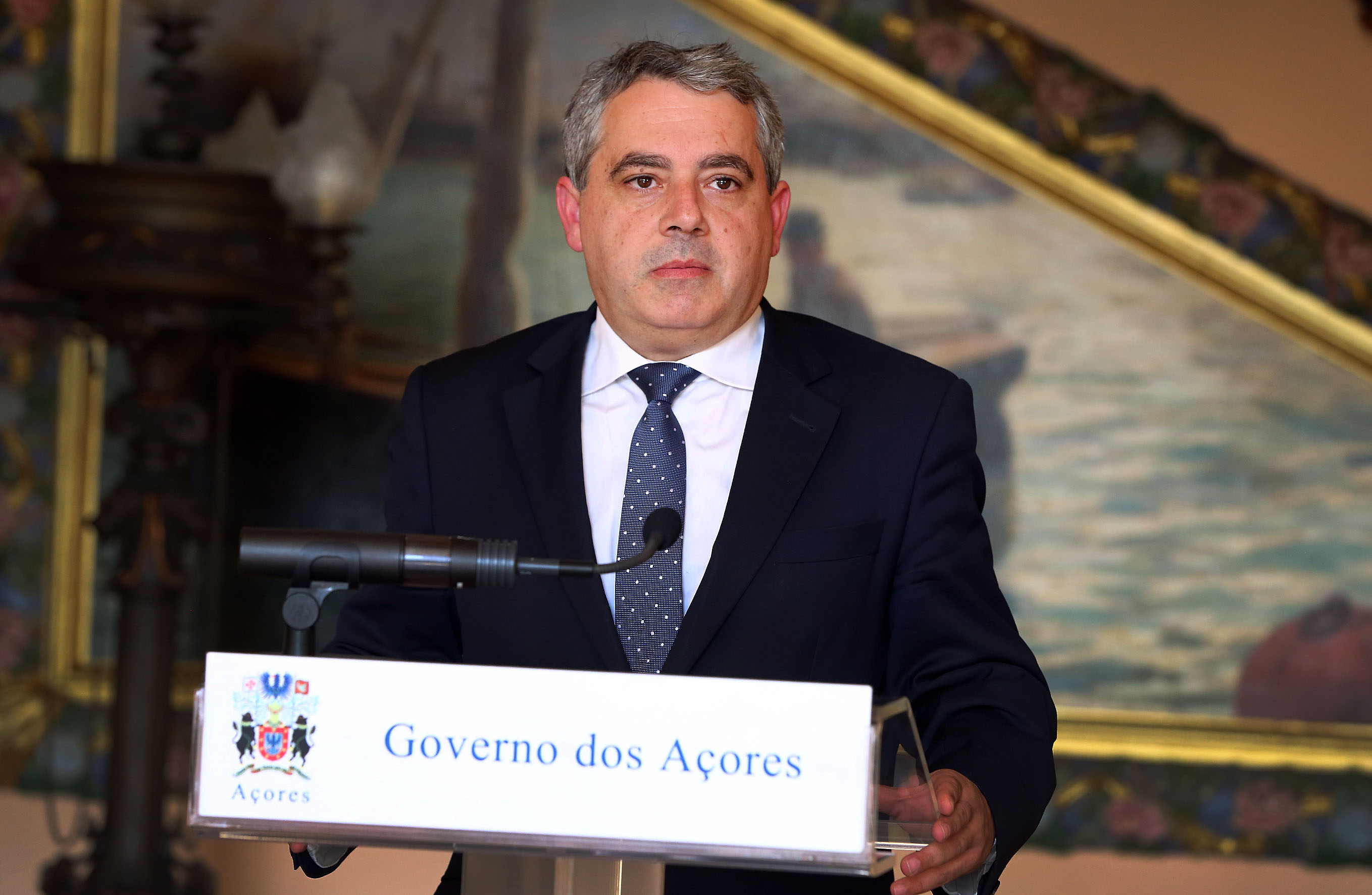 Registo fotográfico do Vice-Presidente do Governo Regional Sérgio Ávila, em declarações aos meios de comunicação social, após audiência, com os partidos políticos e os parceiros sociais, no âmbito do processo de auscultação sobre as antepropostas de Orçamento Regional e de Plano Anual para 2015, no Palácio de Santana, em Ponta Delgada.