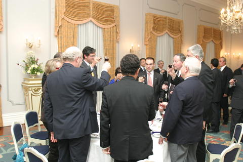 Registo fotográfico do brinde do Secretário Regional da Presidência a todos os presentes no jantar oferecido pelo presidente do Governo em honra do presidente da Câmara dos Comuns do Canadá e do presidente da Assembleia da República, no Palácio da Conceição, em Ponta Delgada.