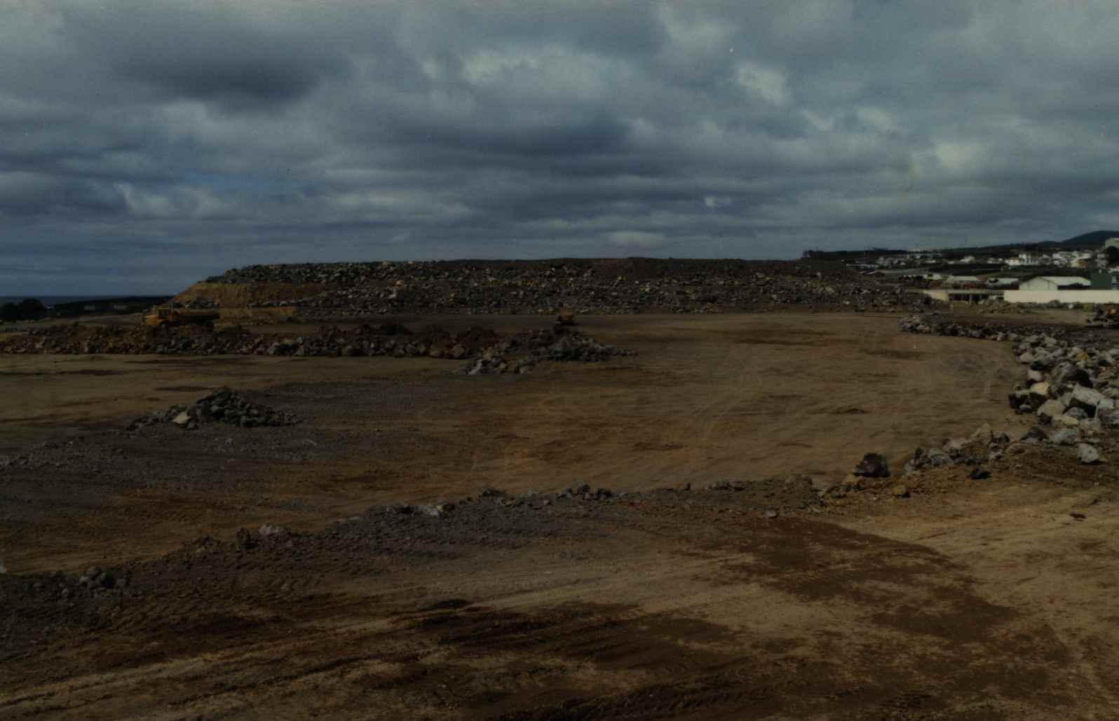 Imagem de demonstra o trabalho efetuado de terraplanagem da pista do aeroporto de Ponta Delgada.