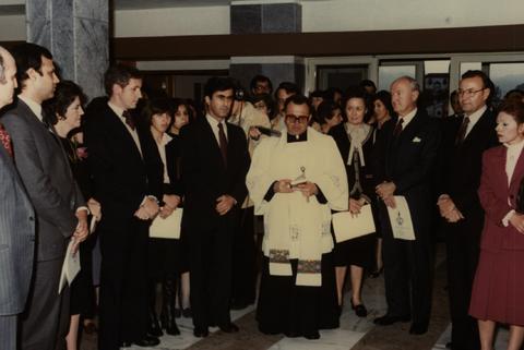 Imagem captada no hall de entrada do edifício atual da Escola de Enfermagem, onde se precede à bênção do mesmo.