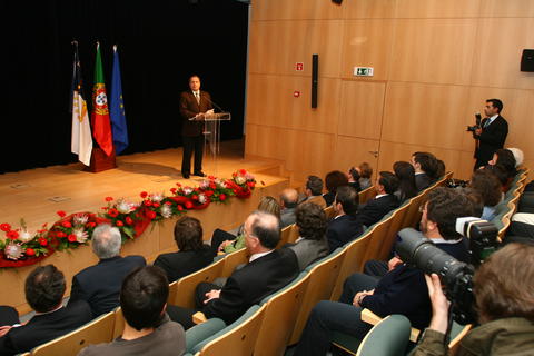 Registo fotográfico do discurso do presidente do Governo Regional, Carlos César, no auditório da Biblioteca Pública e Arquivo Regional da Horta, no Faial.