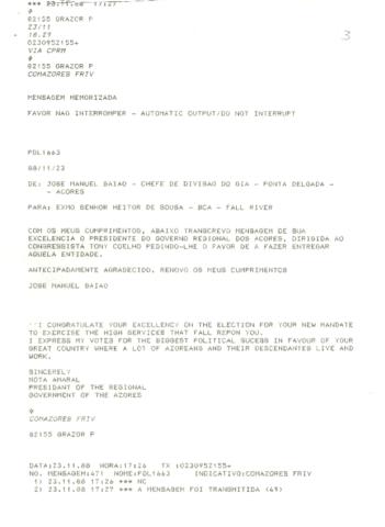 Mensagem de congratulação ao Congressista Tony Coelho por reeleição pelo Estado de Rhode Island
