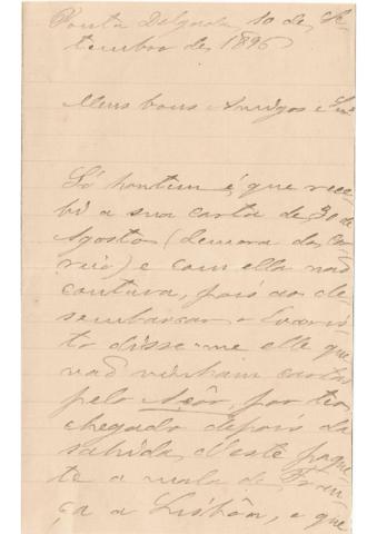 Refere que José Bensaúde entregou a Margarida Leite do Canto a cópia da parte de uma “carta em que tão boas notícias são dadas”, referindo à boa evolução do estado de saúde de Ernesto do Canto, entre outros assuntos. Pela saudação se deduz que a carta, para além de Eugénio, é dirigida também ao irmão Ernesto.