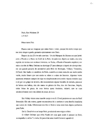 Mostra-se com espírito feliz, descrevendo o que tem feito desde almoços, por exemplo com o Marquês Jácome Correia [Aires Jácome Correia] , ida ao teatro e passeio de carro pelos arredores de Paris.