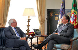 Registo fotográfico do líder da bancada parlamentar do PS nos Açores, Berto Messias e do deputado socialista, Domingos Cunha, em reunião com o Presidente do Governo Regional Presidente do Governo Regional, Vasco Cordeiro, e com o Secretário Regional da Saúde, Luís Mendes Cabral, no Palácio de Santana, em Ponta Delgada. O presidente do Governo Regional reuniu-se com os Partidos Políticos, para recolha de contributos para o - Compromisso para a Sustentabilidade do Serviço Regional de Saúde